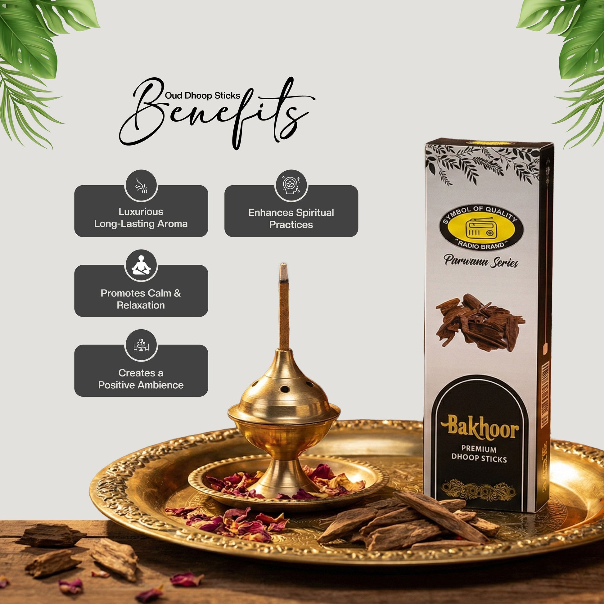 Every stick is made carefully using traditional methods with natural ingredients to deliver smooth & long lasting fragrance that enhance your spiritual practices, meditational sessions, simple moments of peace or relaxation or any special occasion. The rich & natural Bakhoor scent creates a peaceful ambience, helping you disconnect from stress and connect from inner peace, eventually helping in relaxation and stress relief.