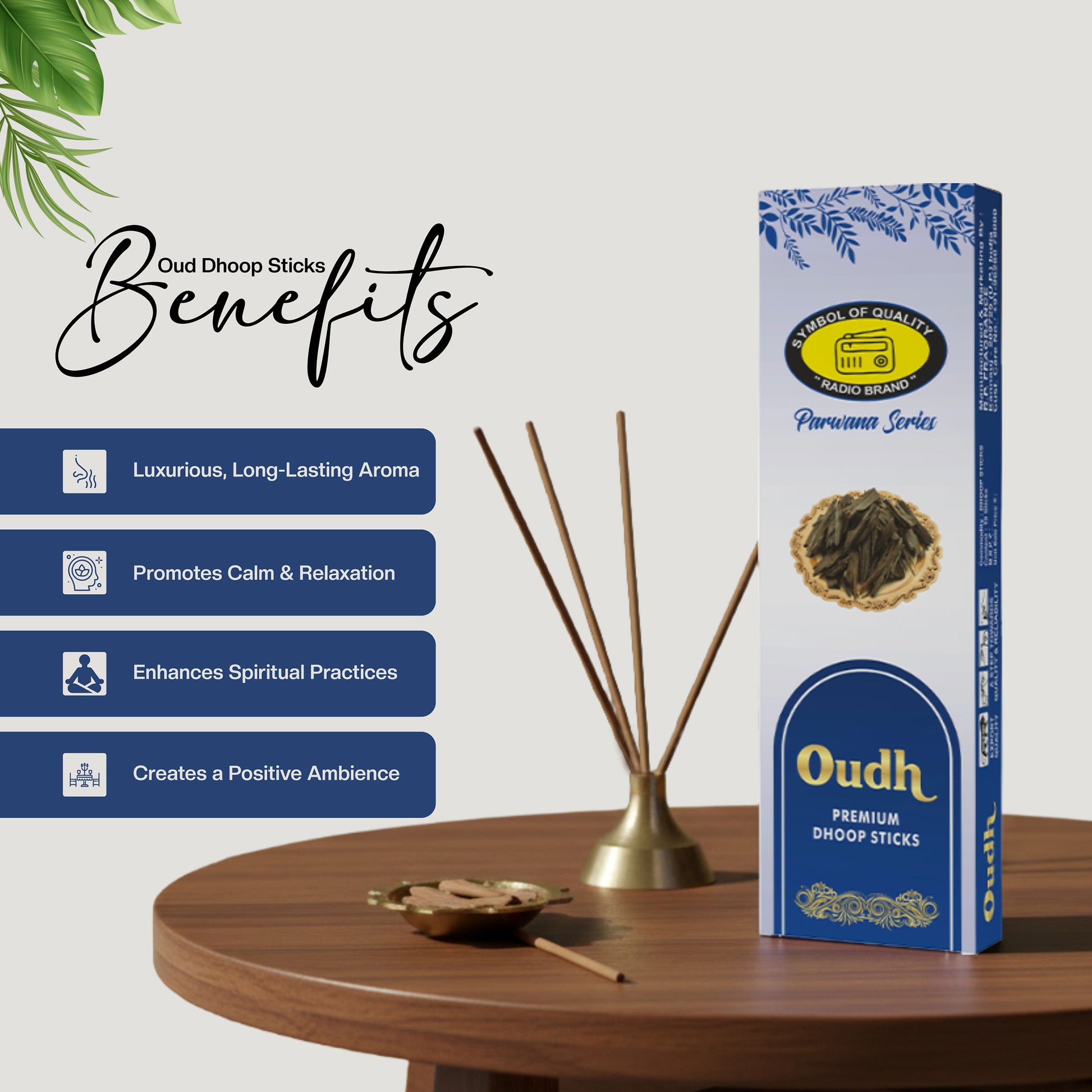 Time to experience the calming essence of nature anywhere at your comfort with Radio Dhoop Sticks. Oudh Premium Dhoop Sticks is prepared with agarwood to give you an aroma of deep, woody scent with sweet, balsamic, and musky undertones of fragrance. These dhoop sticks offer a luxurious blend of warmth and serenity perfect for elevating your spiritual activity.